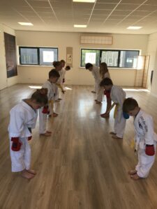 - Kumite, partneroefeningen. Dit kunnen zowel vastgestelde stijlvormen als vrije vormen zijn denk aan sparren met beschermers om. Daarnaast besteden we aandacht aan zelfverdediging op pakkingen of aanvallen met mes en stok*